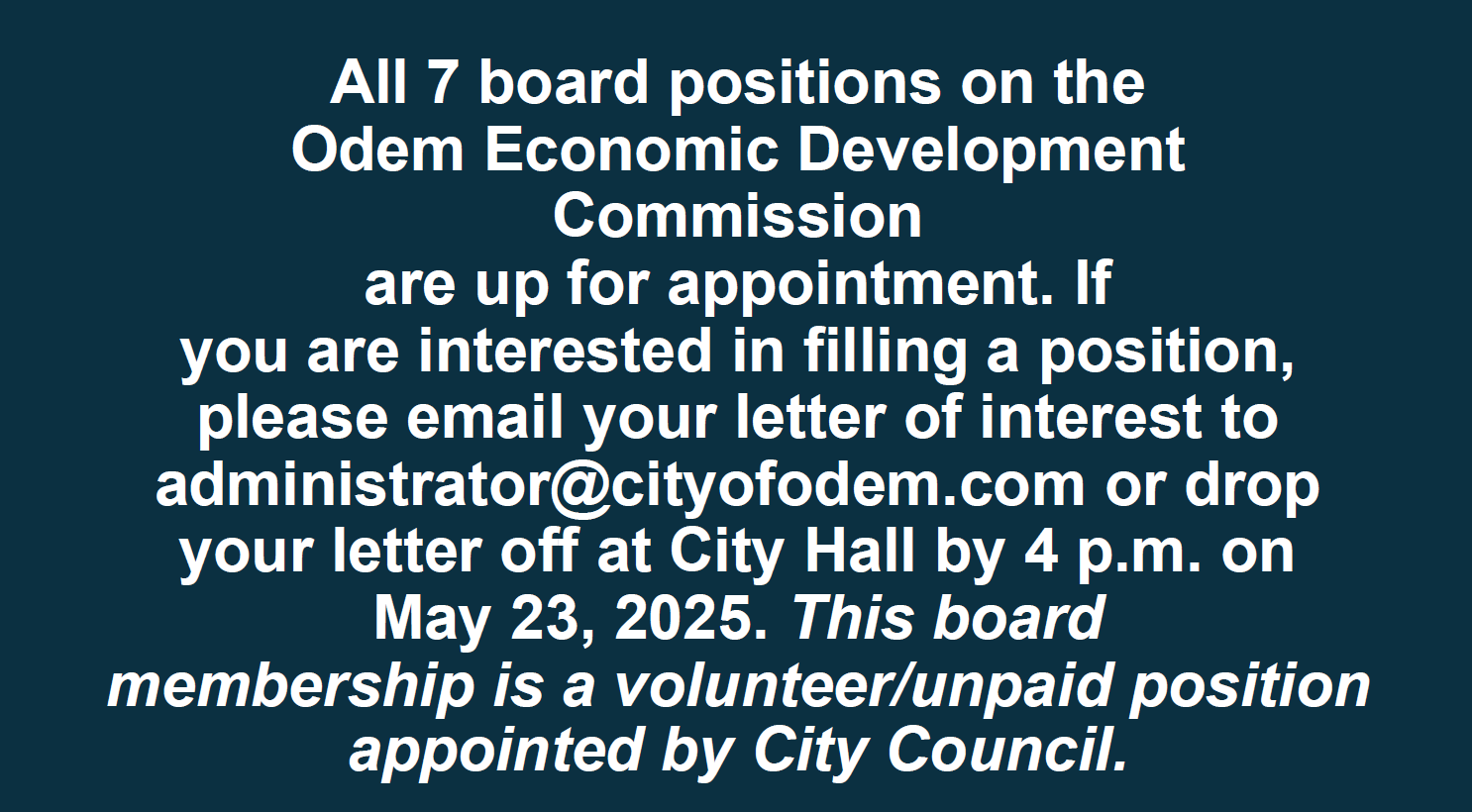 EDC Board Appointments May 11, 2025 by City of Odem Web Team in City News 0 About City of Odem Web Team